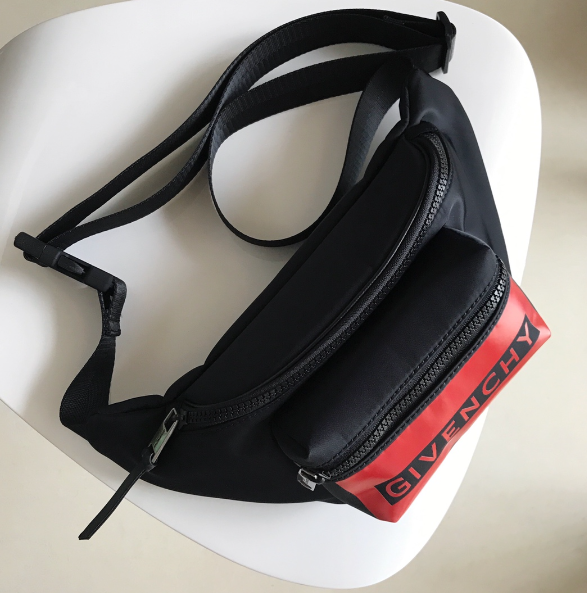 Givenchy waist bag/chest bag small made of nylon cloth. The main structure of the bag is a zippered main compartment and a small zippered pocket on the front. Black leather zipper puller, black canvas adjustable shoulder strap, can be used as a waist bag or shoulder bag, suitable for men and women.
