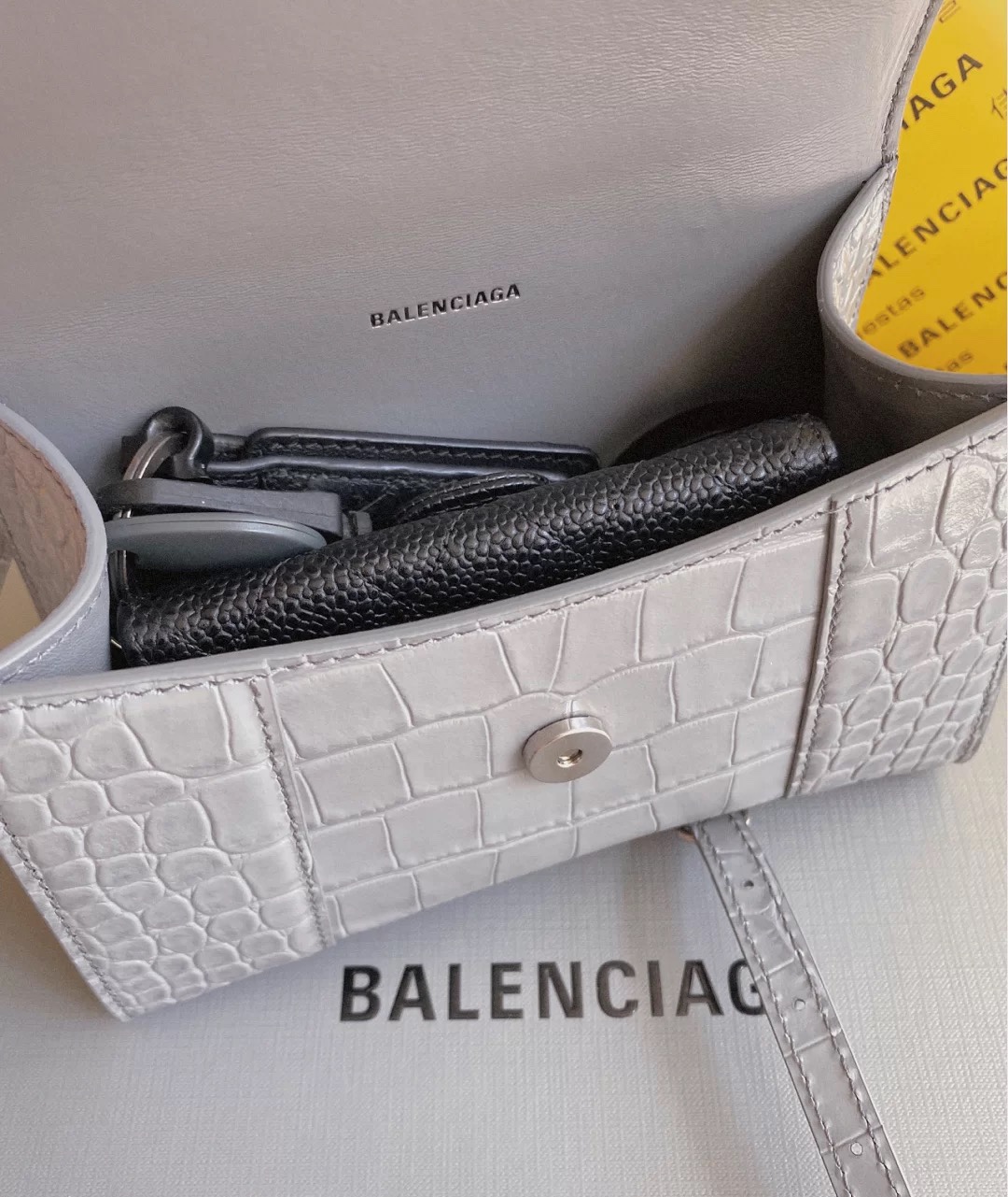 Balenciaga Hourglass Bag Retro Gray Crocodile Pattern Top Upgraded Version Spot real shot, imported calfskin embossed crocodile inside and outside full leather, instant delivery, trendy