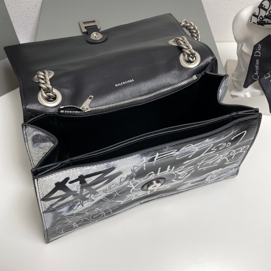 Balenciaga Crush’s handmade cool graffiti pleated chain bag is in stock. The reinterpretation of wrinkled cowhide and metal chain is eye-catching. It is deeply loved by major Internet celebrities. It breaks the traditional stiff bag shape and the leather is really soft. It is very comfortable, with multiple compartments and large capacity. The shoulder strap can be switched to be worn on one shoulder or cross-body. The casual and elegant style is the same for men and women. It is very fashionable and durable.