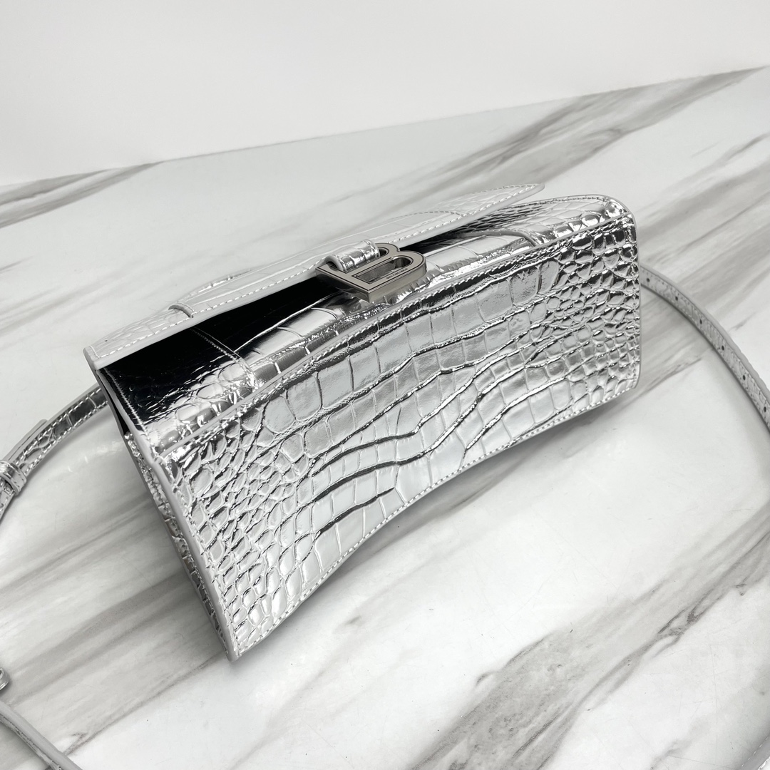 Balenciaga Hourglass Crocodile Sand bag (Silver Buckle) – Silver 39833