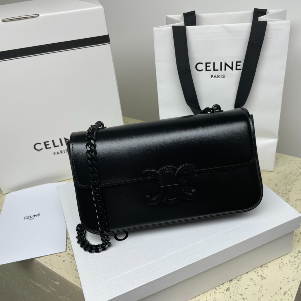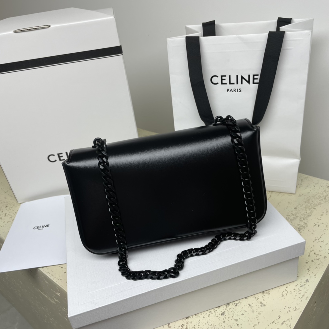 Celine Chain Underarm Triomphe Canvas Bag – Black 21522