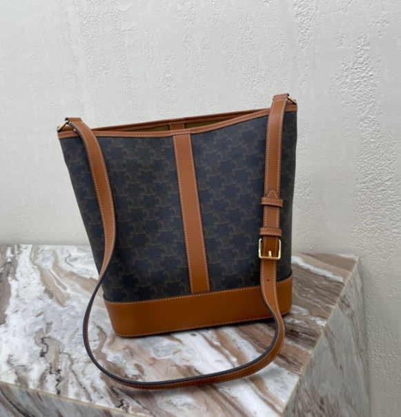Popular white printed series CELINE TRIOMPHE canvas medium bucket bag