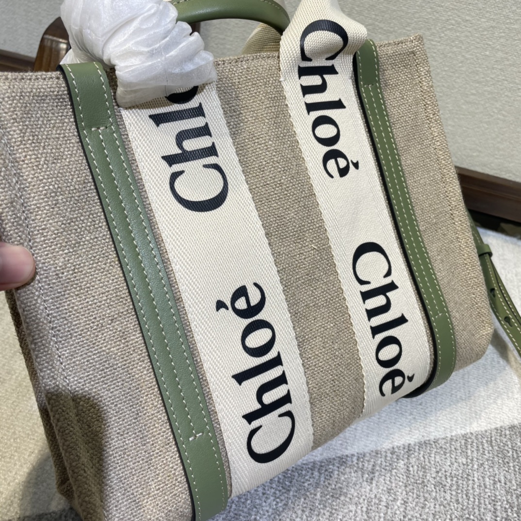 Chloe Woody Small Shoulder Strap Tote Bag - Green 88827