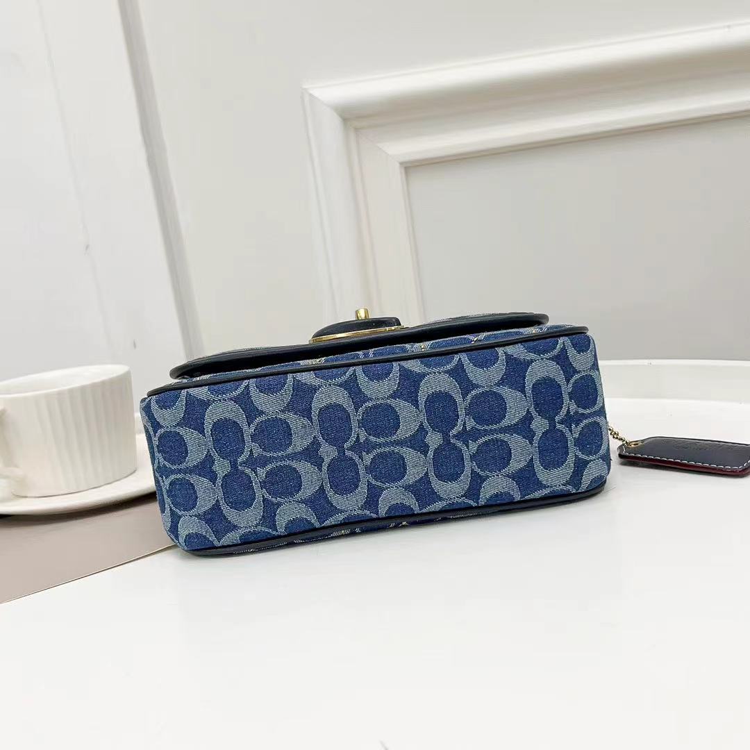 Coach’s small size is more flexible and cute. Model number: CA581 Quilted PILLOW MADISON shoulder bag, soft European bag, new denim color matching, exquisite and unique, eye-catching, different styles, multiple carrying methods, fashionable and trendy, can be salty So sweet ~ The modern denim fabric is soft and lightweight, echoing the classic C logo to present a unique three-dimensional trendy visual casual chain that unlocks unlimited fashion potential. Copper-colored twists are cleverly embellished to reproduce the romantic cowboy style.