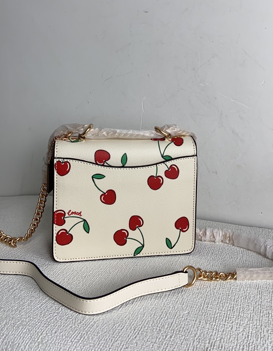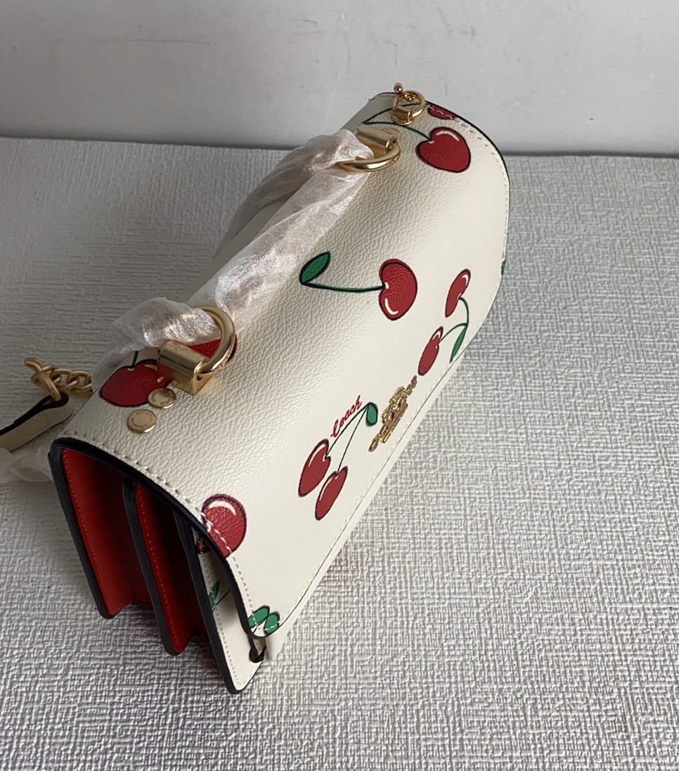 Coach fashion big-name women’s bag Klare mini accordion bag flip chain crossbody shoulder box bag, cherry