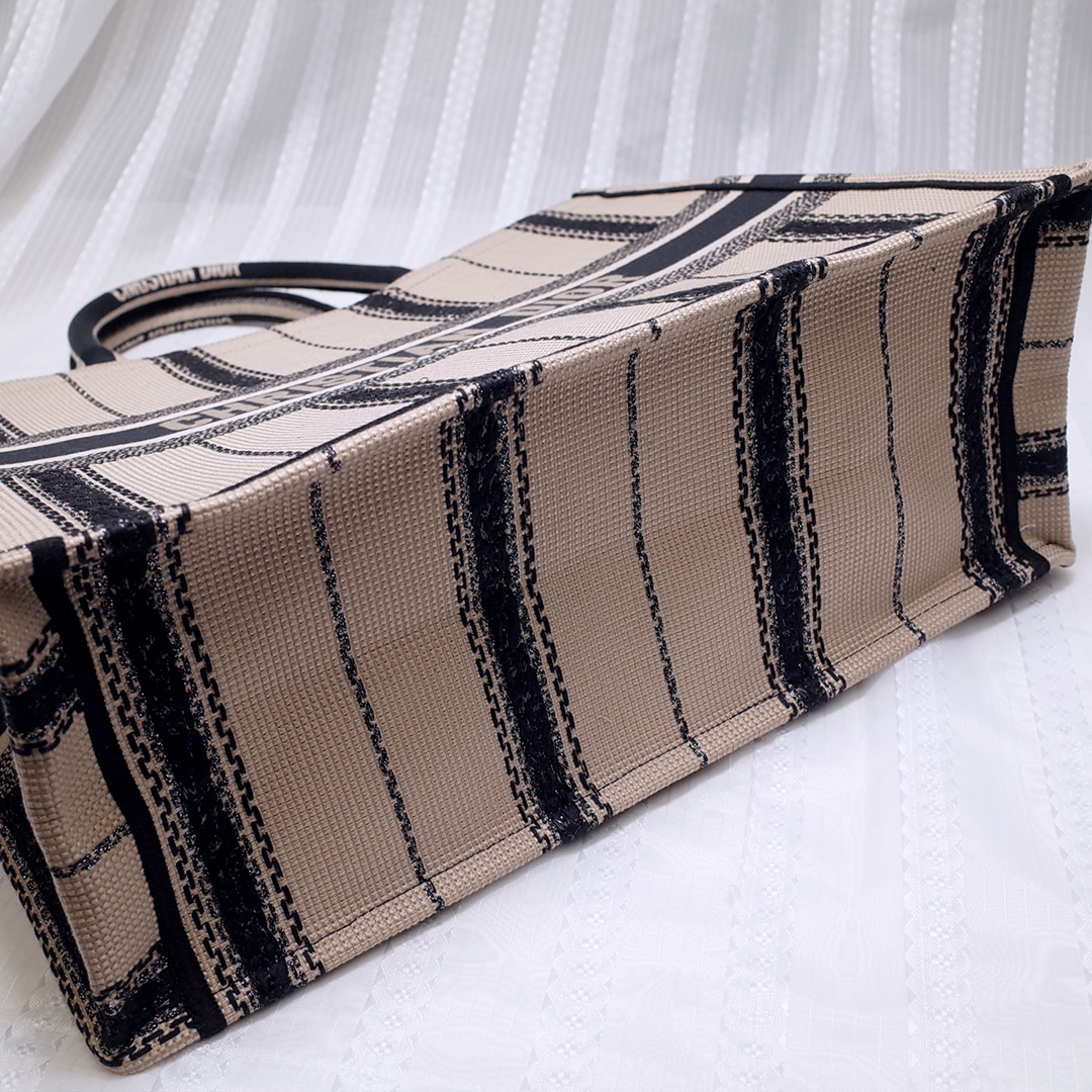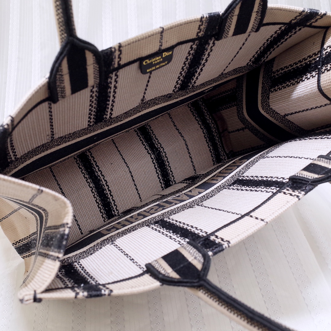 Dior Book Tote Black And Beige Embroidered Handbag 16205
