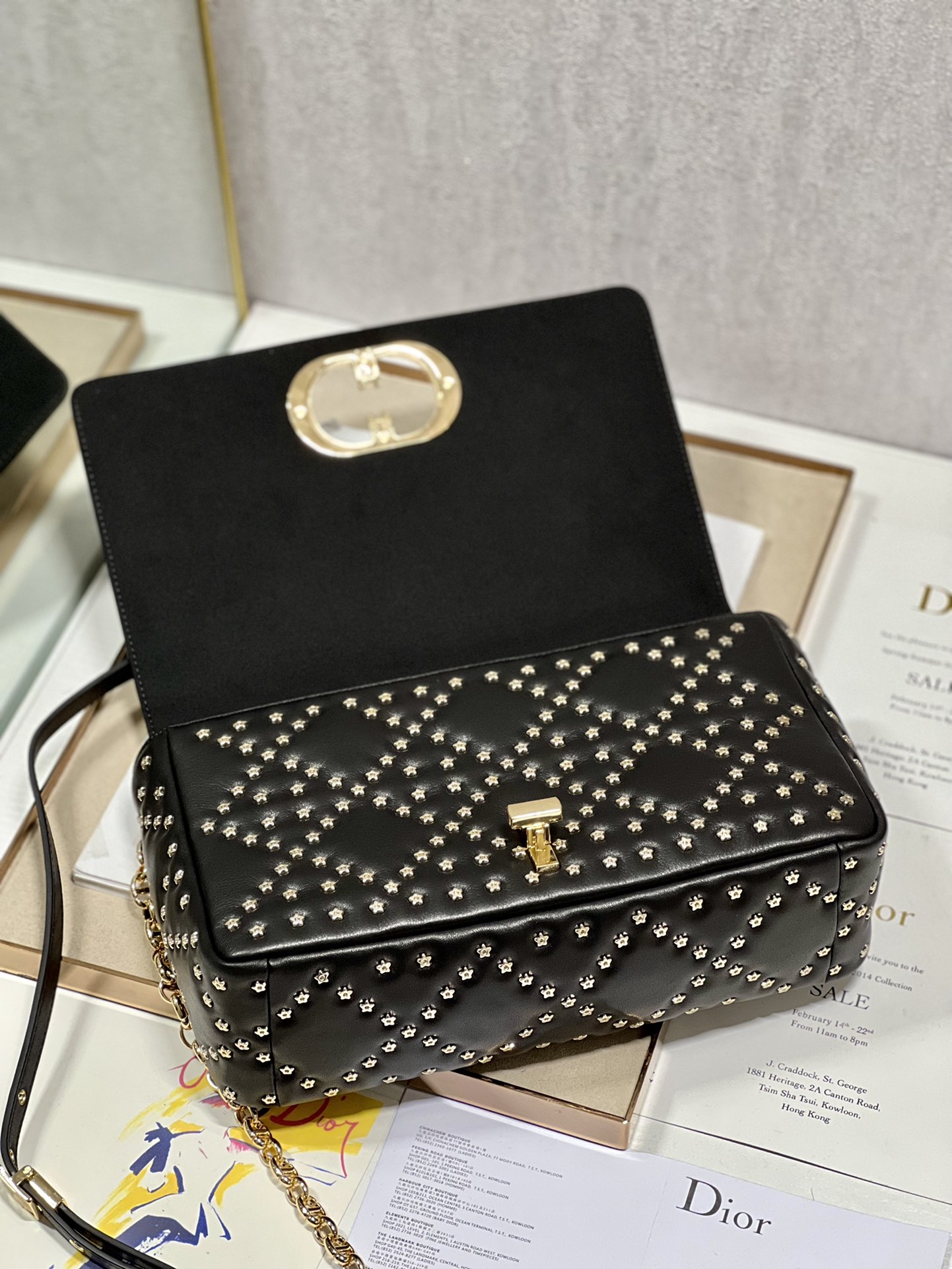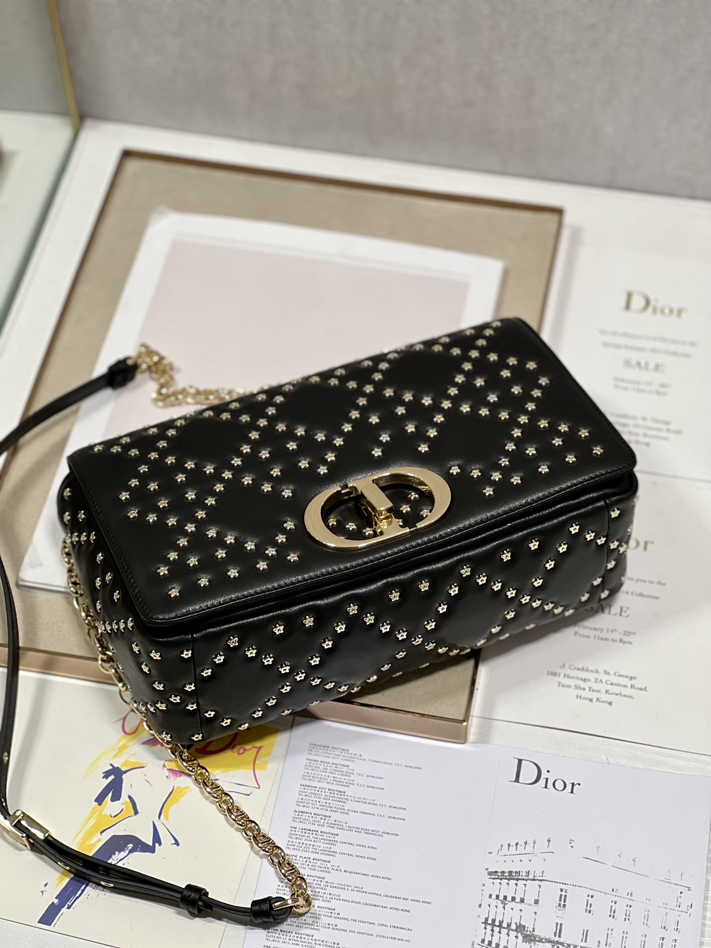 The flip cover is decorated with a golden metal ‘CD’ buckle, and small five-pointed stars are inlaid at the intersection of diamond seams✨✨✨