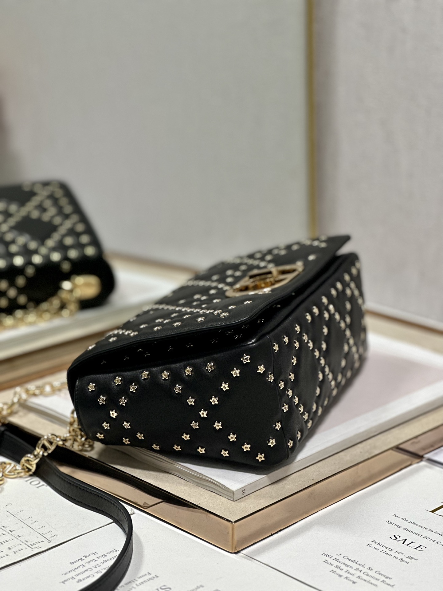 Dior Medium Caro Handbag – Pentagonal Star Black Gold Buckle 91884