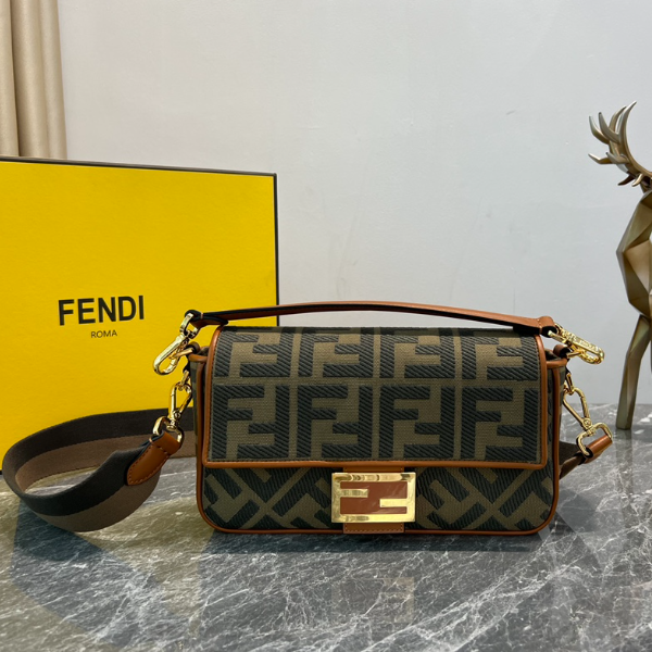 FENDI’s popular baguette washed denim embroidered with double F iconic, low-key and meaningful magnetic buckle + flip design, extremely safe, one long and one short shoulder straps, detachable retro gold lining
