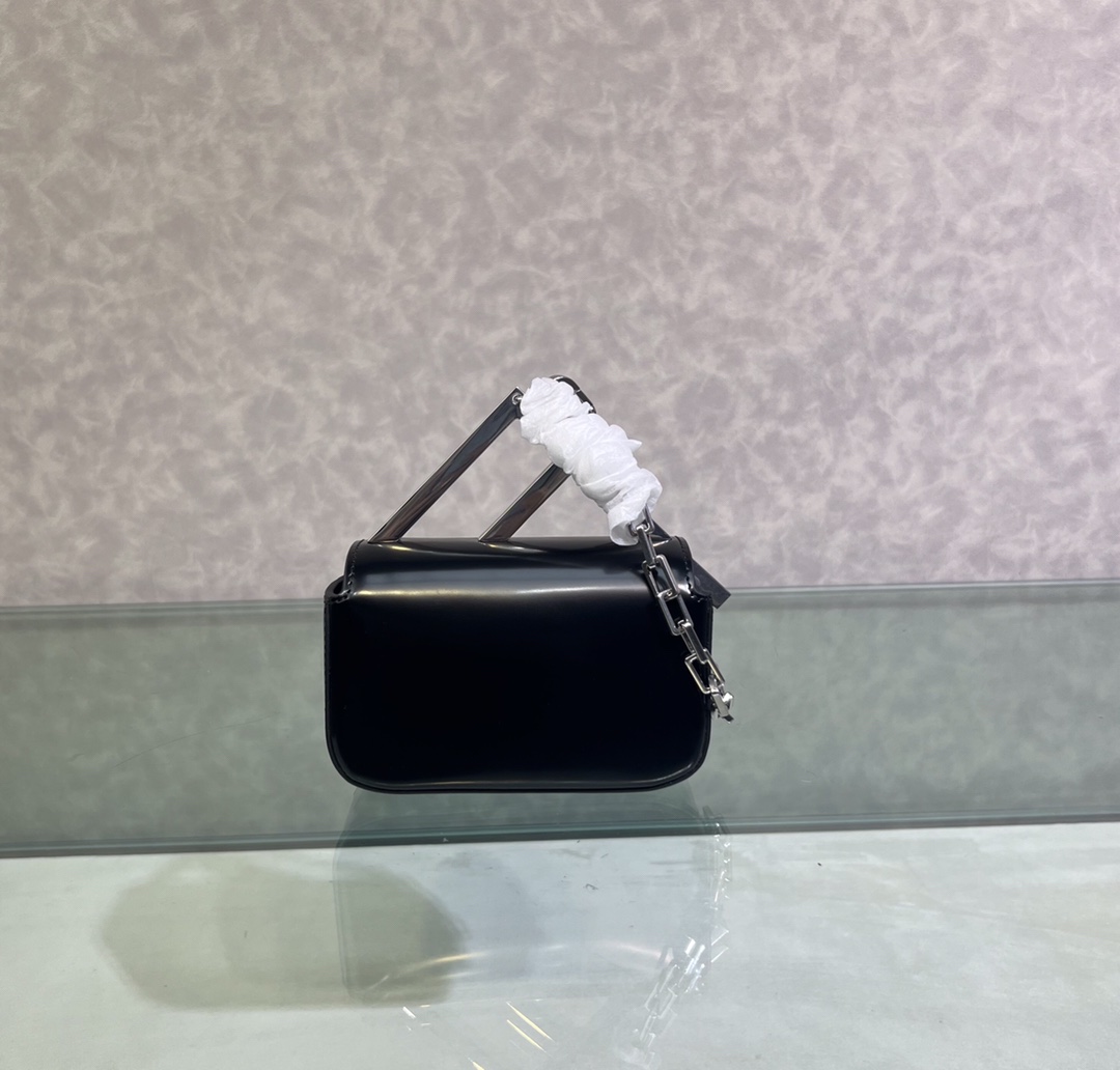 First Sight handbag is made entirely of leather, decorated with large F-pattern metal accessories and chains, matching leather lining, equipped with inner pockets for easy use, with retro silver metal parts, short chain handbags, super versatile~