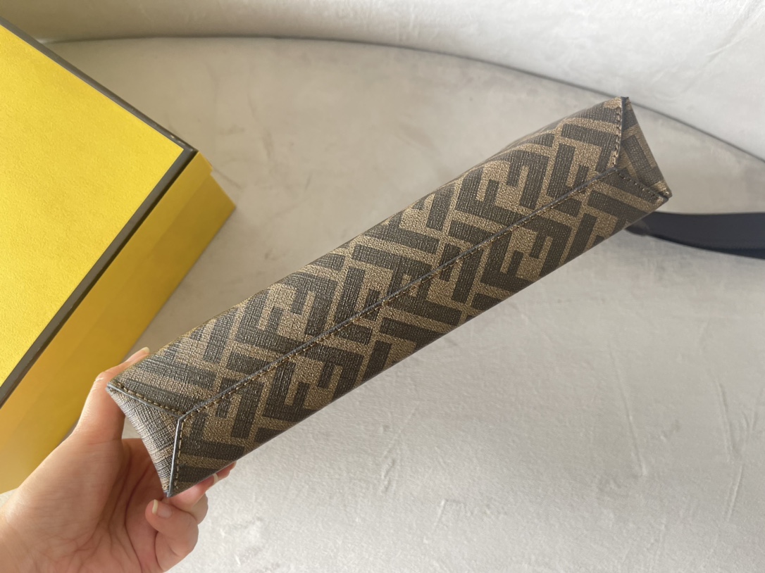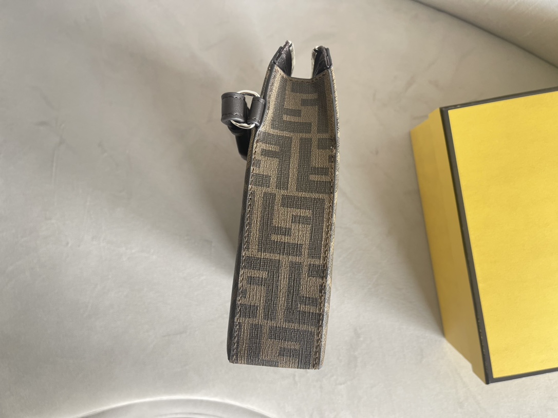 Clutch bag in textured fabric, decorated with white FF pattern and gray FENDI ROMA print. Decorated with white leather details. Features interior compartment with zip closure, card holder and silver-finish hardware. Detachable web bracelet handle with Fendi signature.