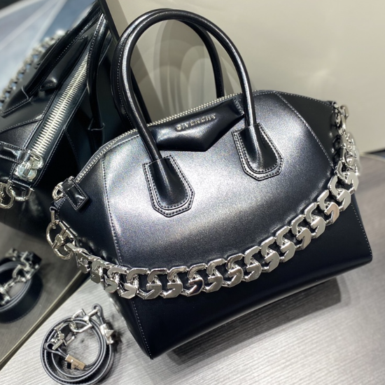 Chain plus 100✅Givenchy GIVENCHY classic Antigona motorcycle bag made of toothpick pattern box cowhide, with a slight gloss that makes the bag very textured! Zip closure. Cotton lining. Interior with 2 flat patch pockets and 1 inner zipped pocket. Equipped with a detachable and non-adjustable long shoulder strap, it can meet your various needs such as carrying it on one shoulder and cross-body.