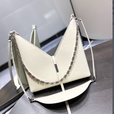 GIVENCHY CUT-OUT chain handbag small is made of cowhide and has a simple triangular cut, which adds a sense of layering and highlights to an ordinary outfit. It perfectly interprets the unisex style. The design of the chain is very special. There is a large shoulder pad on the shoulder strap when worn diagonally, which reduces wear and does not tighten the shoulders. It is really a simple design and full of details. It can be carried by both men and women.
