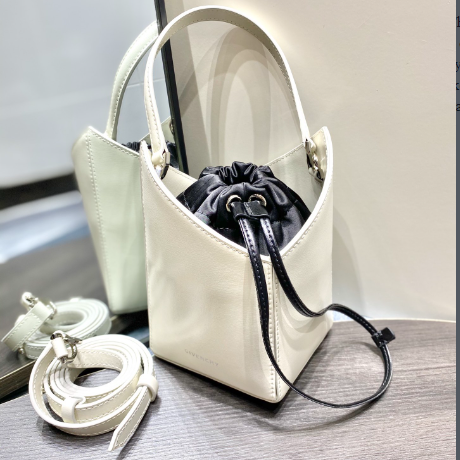 GIVENCHY Mini Cut Out Bucket Bag The Cut Out series has another new style🥰This time it is also super personalized! Different from other brands of bucket bags, this bag has a geometrically symmetrical design, which makes it very stylish and impressive at first glance. The entire bag is made of cowhide, with a satin inner pocket and drawstring closure. In addition to a detachable short hand strap, there is also a detachable and adjustable long shoulder strap. It can meet your different needs such as hand carrying, shoulder carrying and cross-body carrying.