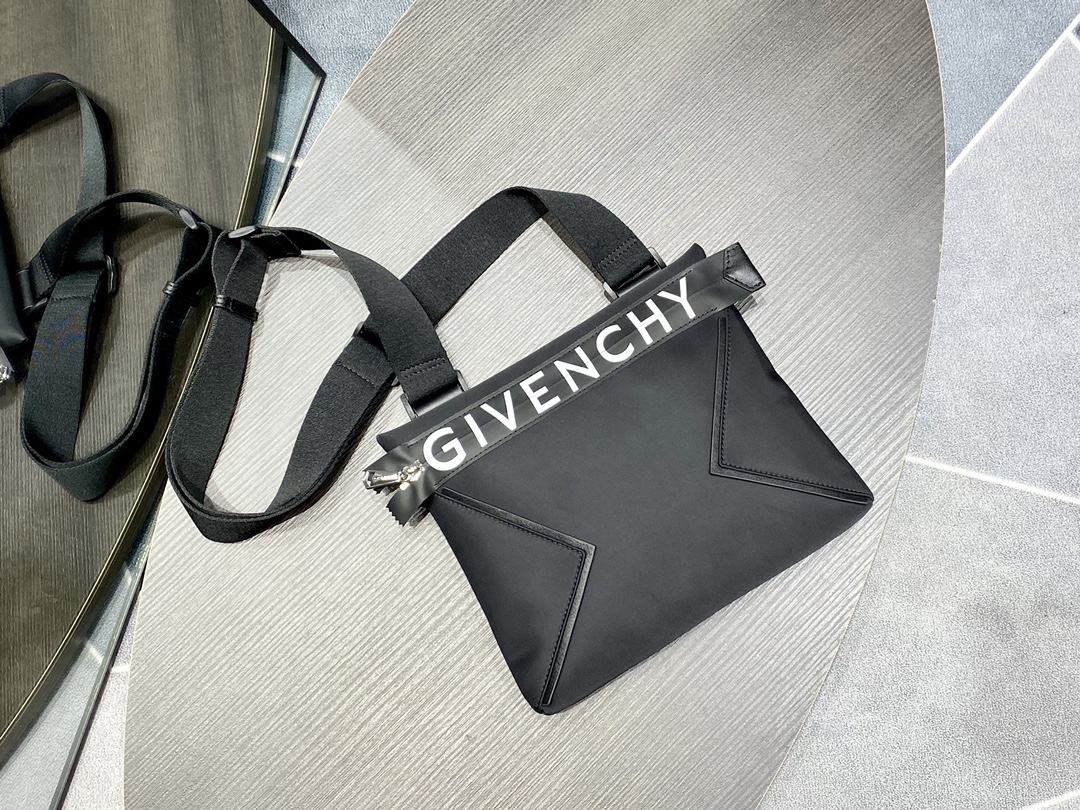 Givenchy crossbody bag counters are updated simultaneously. Made of nylon fabric and cowhide, the adjustable straps are comfortable and the large zipper opening with LOGO is unique and novel.