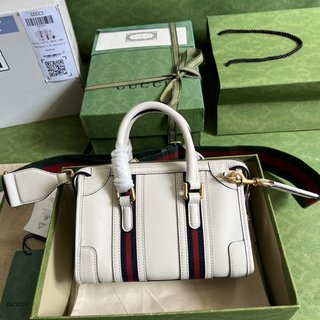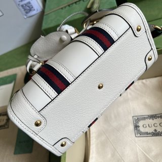 Mini small canvas handbag, the brand new “Exquisite Gucci” series handbags renew the style of travel bags. White original GG full leather, striped webbing, double G accessories, and the brand’s classic logo jointly interpret the unique style. White Classic GG, white leather trim, gold-toned hardware, Double G in red and blue Web, detachable ID plaque, detachable leather keychain, metal protective feet, side zip closure, interior: 2 zipped pockets, handle (8 cm high) detachable shoulder strap (56 cm high) zip closure.