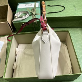 With a full set of original green box packaging” Gucci Diana series medium shoulder bag. This small shoulder bag cleverly combines two of the brand’s recognizable elements-the bamboo handle and the Double G hardware, giving the whole shape a unique charm. Crafted from white leather, this accessory has a contrasting white leather shoulder strap to complete the look. White leather trim, gold tone hardware, microfiber suede lining Double G, additional leather shoulder strap, interior: 1 zipped pocket, bamboo handle (13 cm high) adjustable leather shoulder strap (52 cm high ) magnetic clasp.