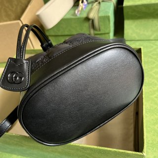 GG Matelassé bucket bag. The reimagines the GG design, and we’ve launched a range of bags marked by textured quilted patterns, including this black bucket bag. Double G hardware embellishes the front, injecting brand identity connotation into the whole design. Black GG Matelassé nylon with black leather trim, black brass hardware with ceramic-effect finish, two detachable shoulder straps: black nylon and black leather, double G, double shoulder strap; leather shoulder strap 60 cm high, canvas shoulder strap high 53 cm, fastened with drawstring