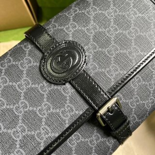 Decorated with interlocking double G printed GG messenger bag. The GG pattern and interlocking double G logo details are ingeniously blended, running through every single product in the 2023 early autumn travel luggage series. The new messenger bag has both a new silhouette and daily functions, fully demonstrating Gucci’s modern vision and tribute to traditional aesthetics. Messenger bag crafted in classic beige and ebony GG Supreme canvas with black leather trim. Beige and ebony GG Supreme canvas, black leather trim, cotton linen lining, Interlocking Double G oval leather plaque, interior: 1 zipped pocket, 1 button pocket, adjustable shoulder strap (53.8 cm high) magnetic flap buckle.