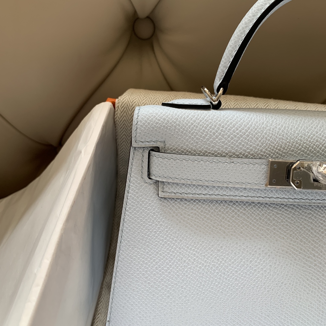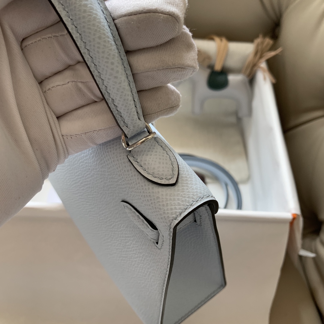 New Arrival TO Haze Blue Mini 2nd Generation 2nd Generation Original epsom Leather Silver Buckle Top Full Hand Stitched