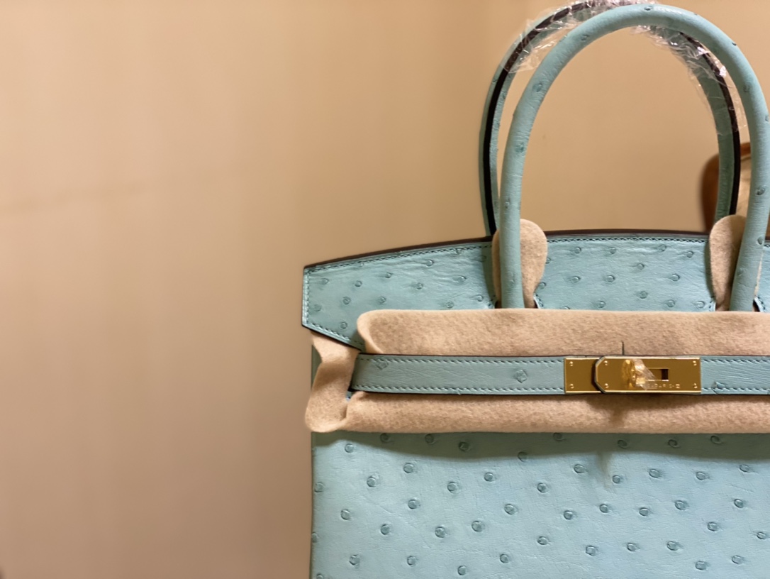 Hermes Ostrich Skin Hand Bag – Blue 67100
