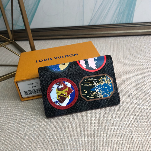 Winter 2018 pocket wallet in Damier Graphite canvas with a leather patch embossed with Alpine views and the iconic LV logo motif. Small in size and powerful in function, it can store credit cards, banknotes and receipts. Size: 11×8cm
