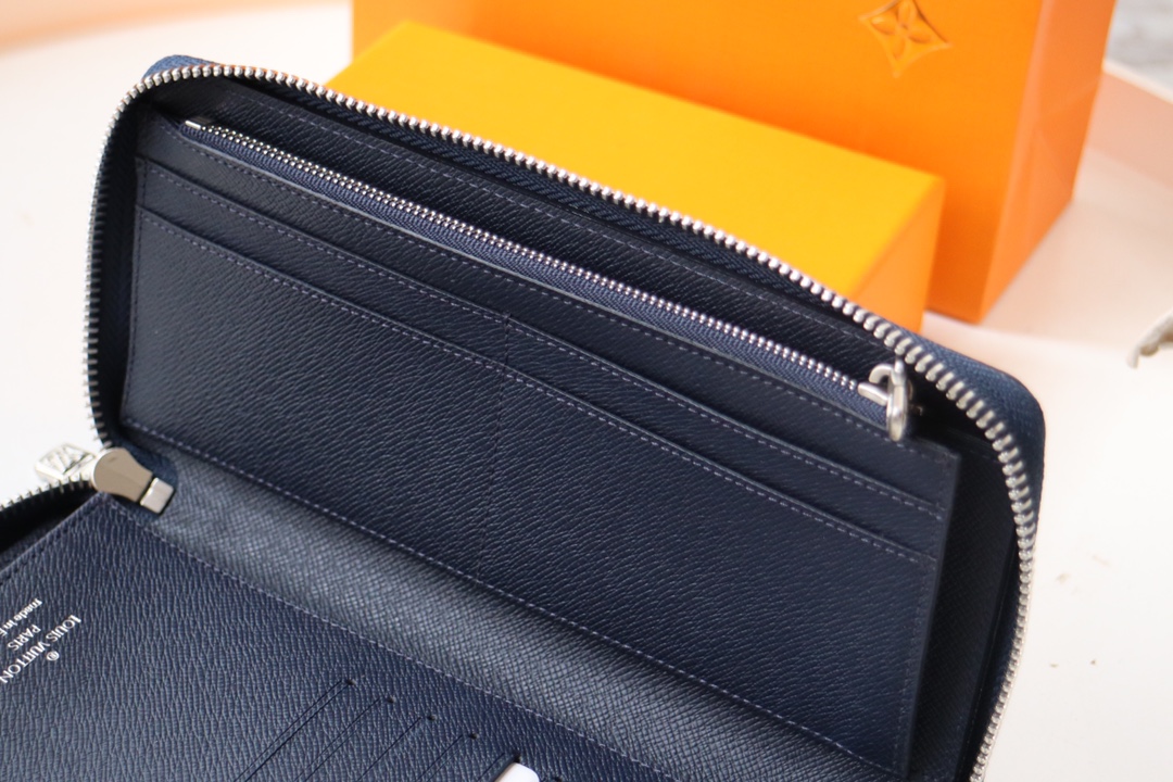 Elegant men’s vertical zip wallet in durable Damier Graphite canvas. Multiple practical pockets and compartments easily hold cash, credit cards and change.