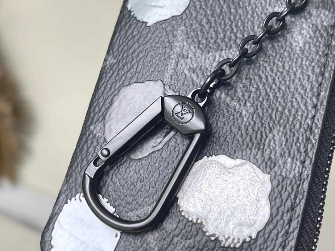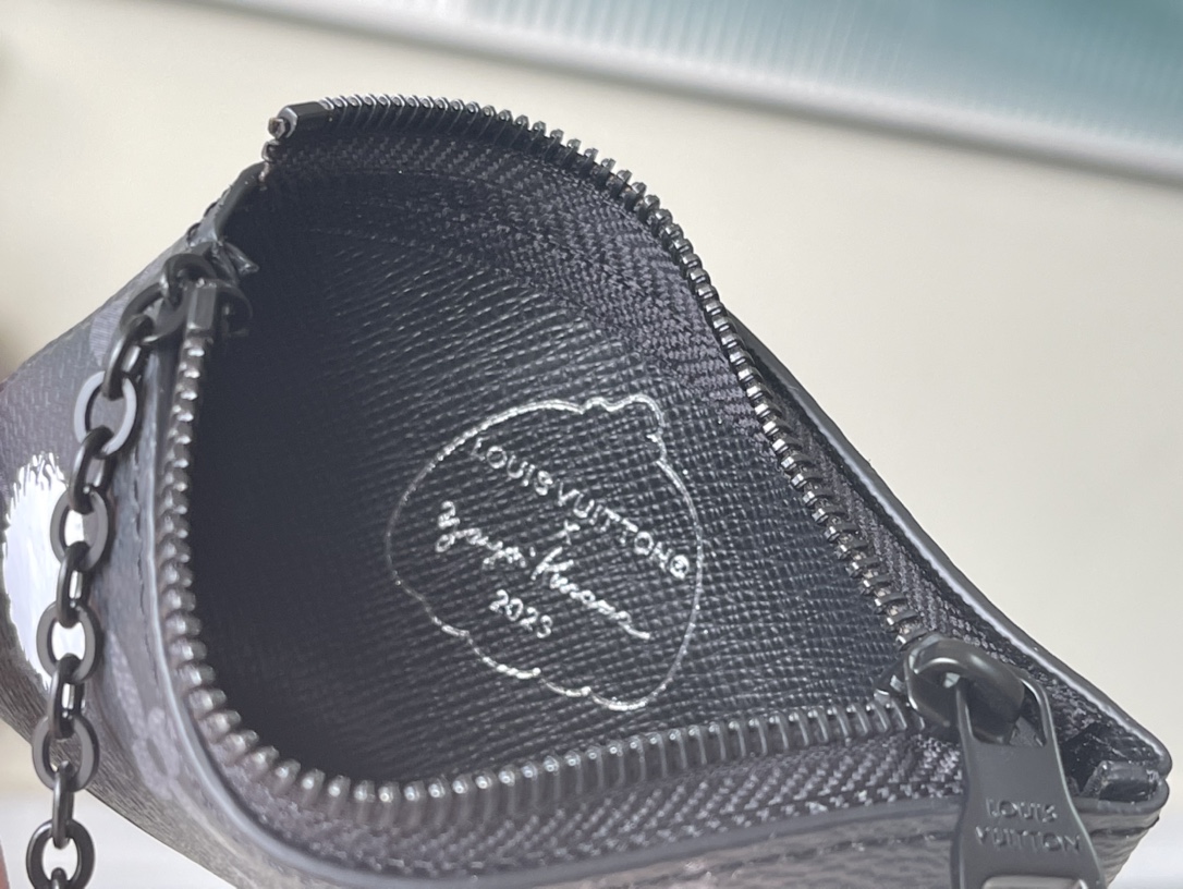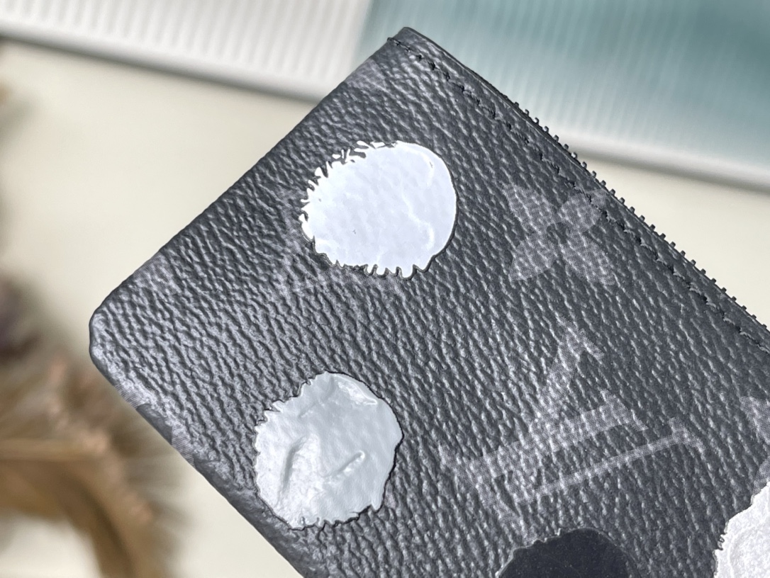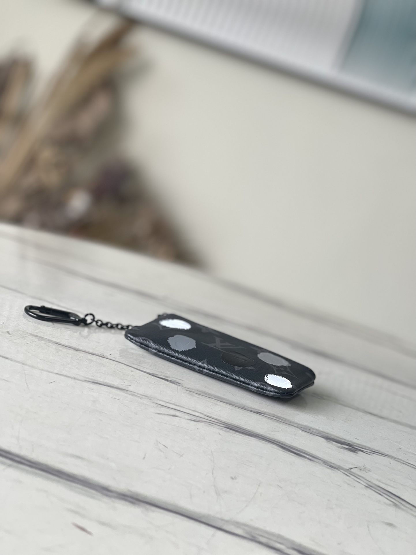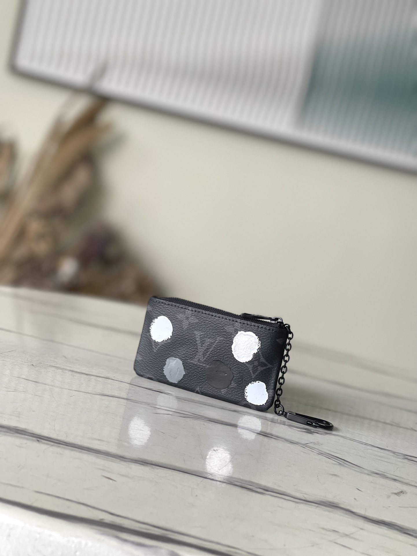 Key Case Wallet Collection This key case joins the extraordinary new x Yayoi Kusama collection. Inspired by the pioneering Japanese artist, this special edition features dots in shades of gray on the Lunar Eclipse Canvas – a thematic motif in her work. A complex screen-printing process reproduces the original brushstrokes of the grassy mountains with a 3D effect. A versatile all-in-one wallet that celebrates timeless art and craftsmanship.