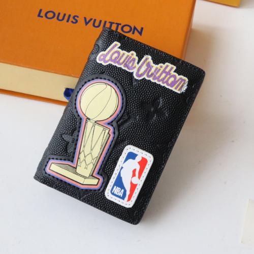 The LVxNBA SEASON 2 capsule pocket wallet features leather-embellished patches and prints that reference the championship jackets worn by NBA stars. The compact shape features card slots and pockets that can fit bills, cards and receipts into a pocket or purse.