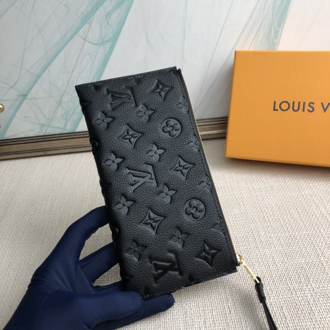 The Mélanie BB clutch is made of soft Monogram Empreinte leather embossed with the classic Monogram pattern, with a V-shaped front pocket and zip closure, which exudes elegance on a slim figure.