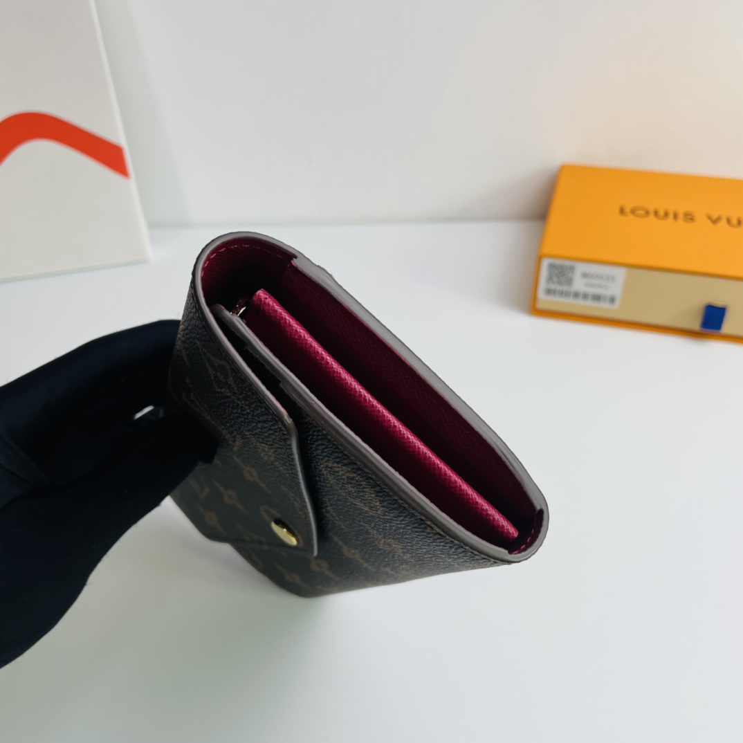 Fuchsia exclusive real shot! This envelope wallet in elegant Monogram canvas features a discreet interior with various pockets and credit card slots.