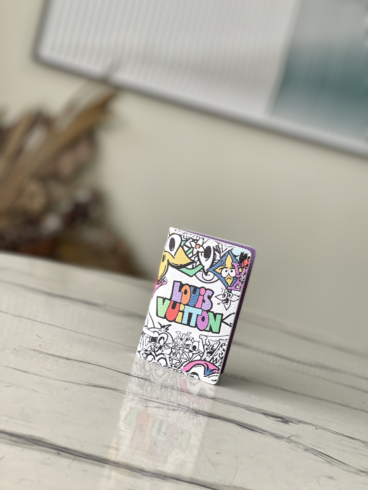 This pocket wallet is made of Monogram Comics coated canvas, staged a joyous gathering of cartoon images, injecting innocence and childlike fun into the classic Monogram pattern. The compact shape includes a card slot, inner and outer pockets.