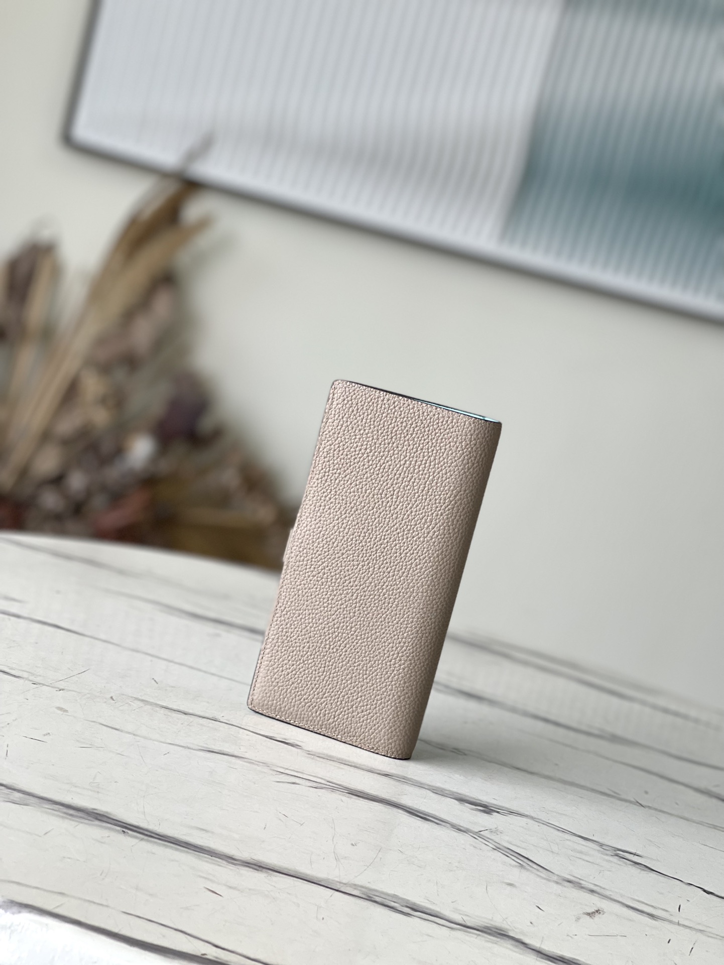 This LV Vertical wallet is made of soft grained Taurillon leather, with lettering for the sliding closure, inspired by the design of Capucines handbags. The pop-up contrast lining features a card slot, zipped coin pocket, and large V-shaped compartment for bills and receipts.