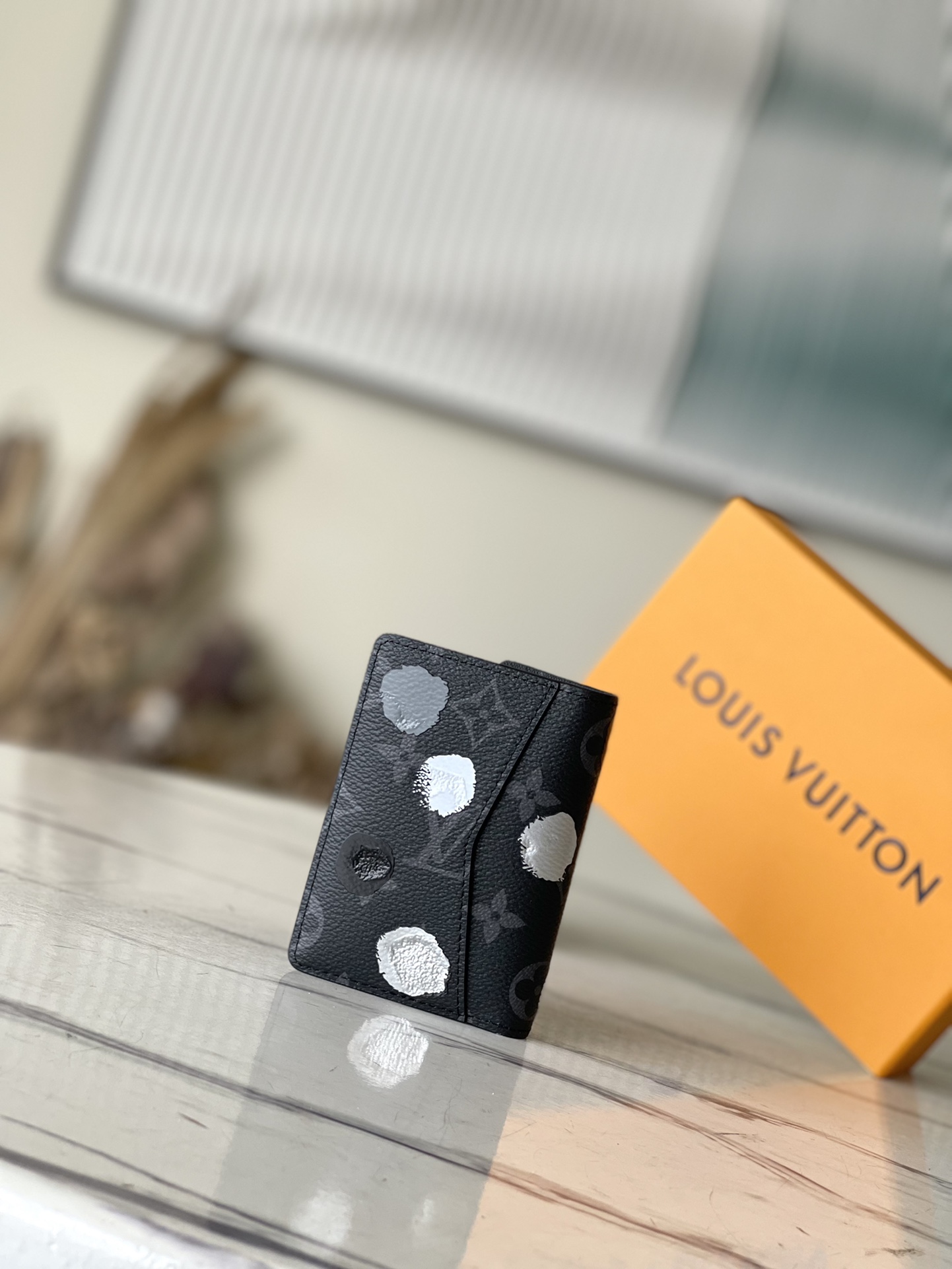 Yayoi Kusama is an artistic pioneer spanning half a century. She regards her beloved polka-dot elements as a symbol of emotional surge. A hand-painted rendering of the x Yayoi Kusama collaboration, this signature print adorns the coated Monogram Eclipse canvas of this pocket wallet, a great addition to art lovers’ collections.