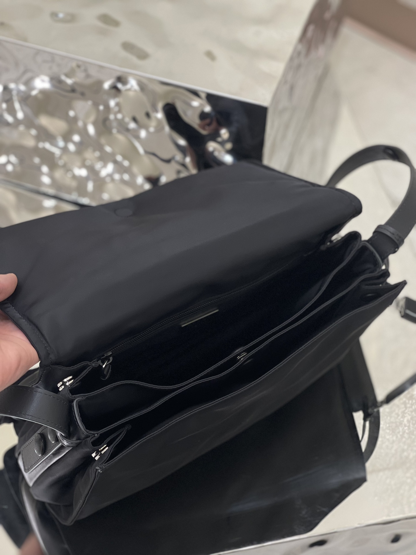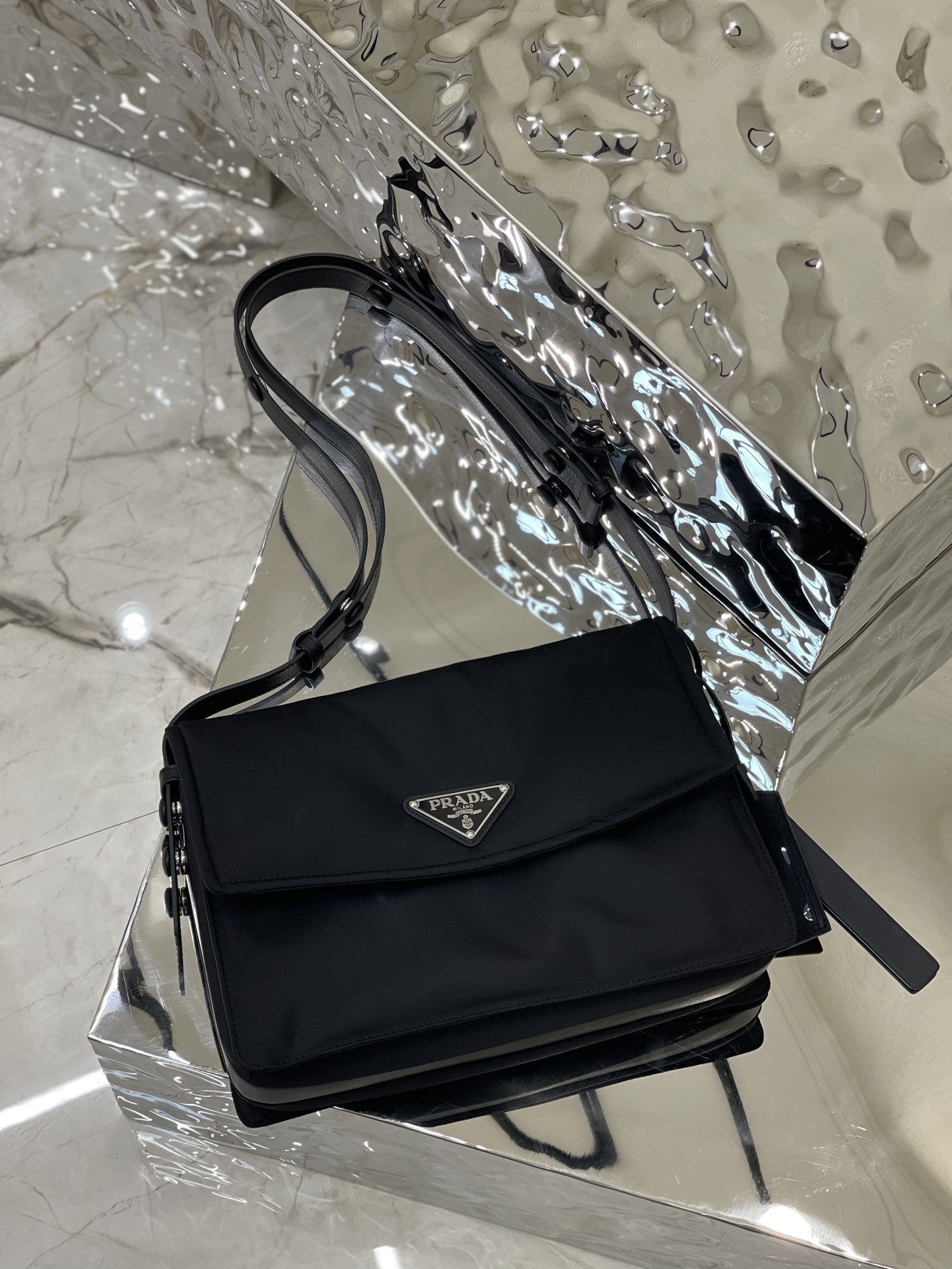 This shoulder bag is made of unique padded nylon, and is equipped with leather shoulder straps and back pockets. The metal accessories give a touch of bright color. The overall style is low-key, luxurious and versatile. The only difference is that it is not detachable and the design is simpler, but the style is still the same. Oh~ Another popular style that will never go out of style! Unisex style for both men and women🉑️