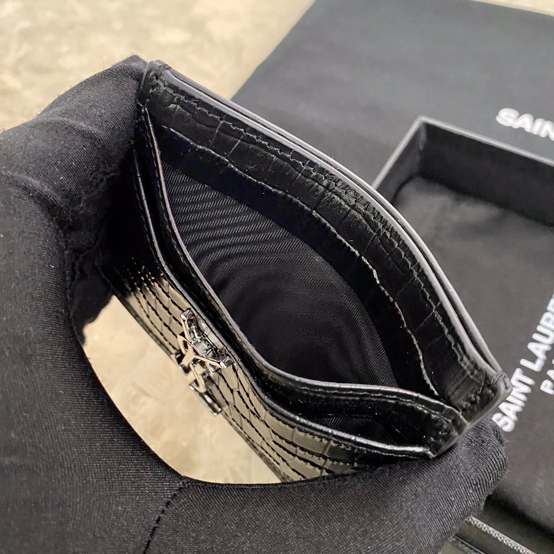 YSL Crocodile Pattern Quilted Card Holder – Black 43726