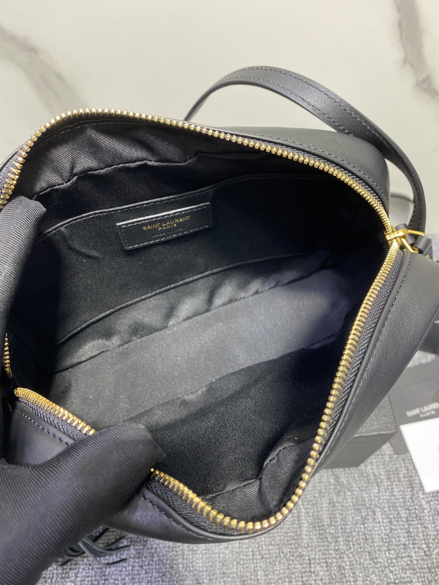 LOU new quilted canvas with leather camera bag MONOGRAM, a shoulder bag that is particularly practical to carry when going out in autumn and winter. It is equipped with an adjustable leather shoulder strap, a detachable leather tassel, and a metal plaque decorated zipper. The zipper is brushed bronze tone metal hardware.