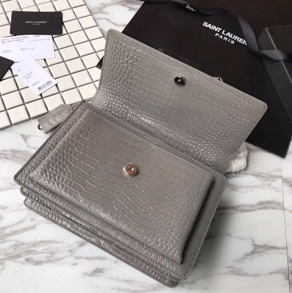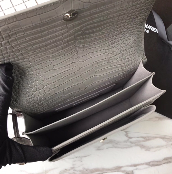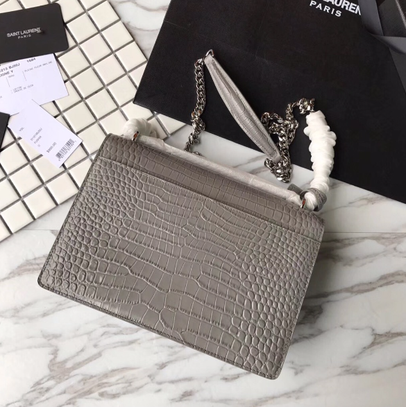 YSL Yves Small Crocodile Handbag – Gray 56536